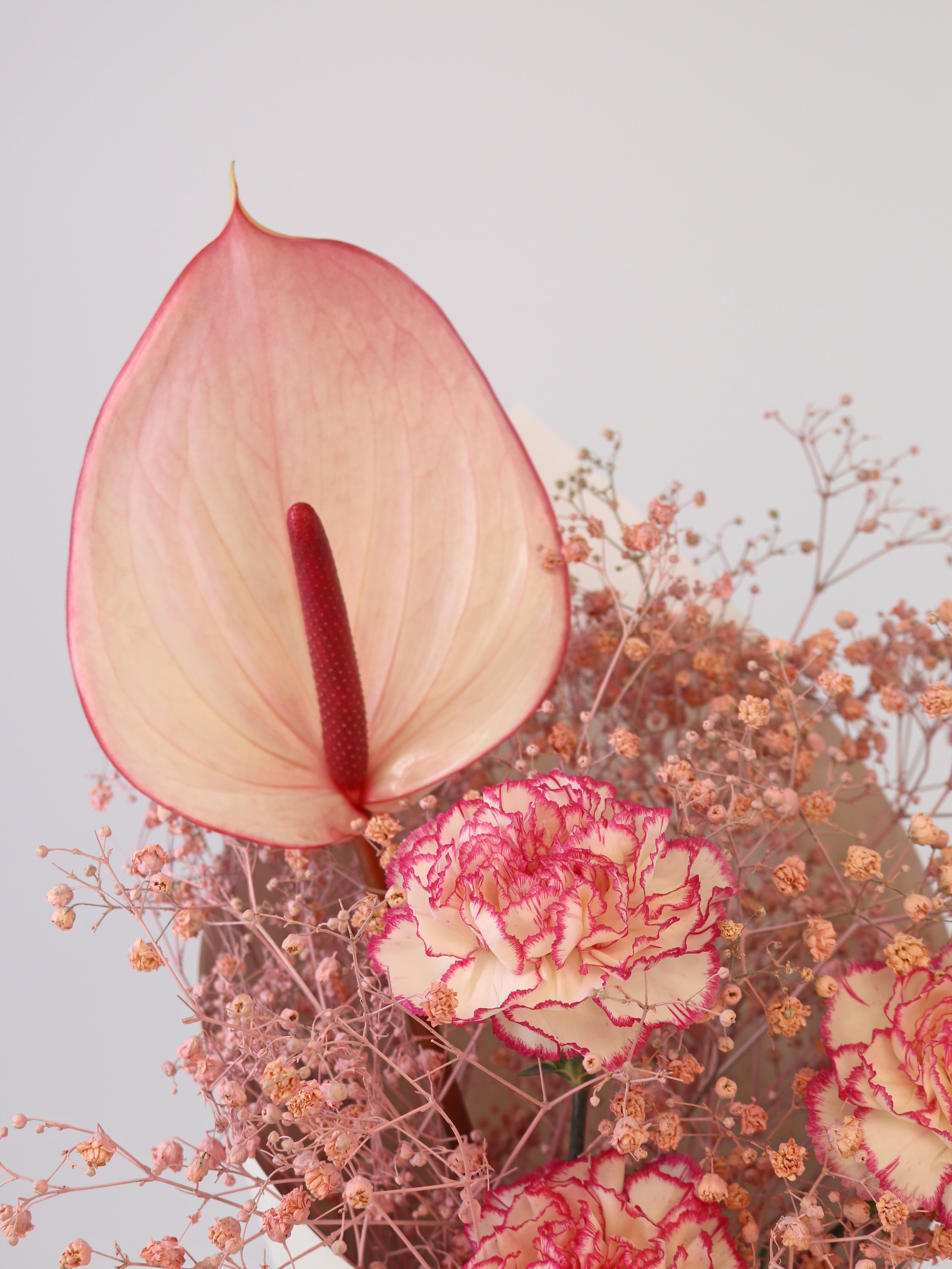 All flowers come beautifully wrapped in our house white tissue paper.